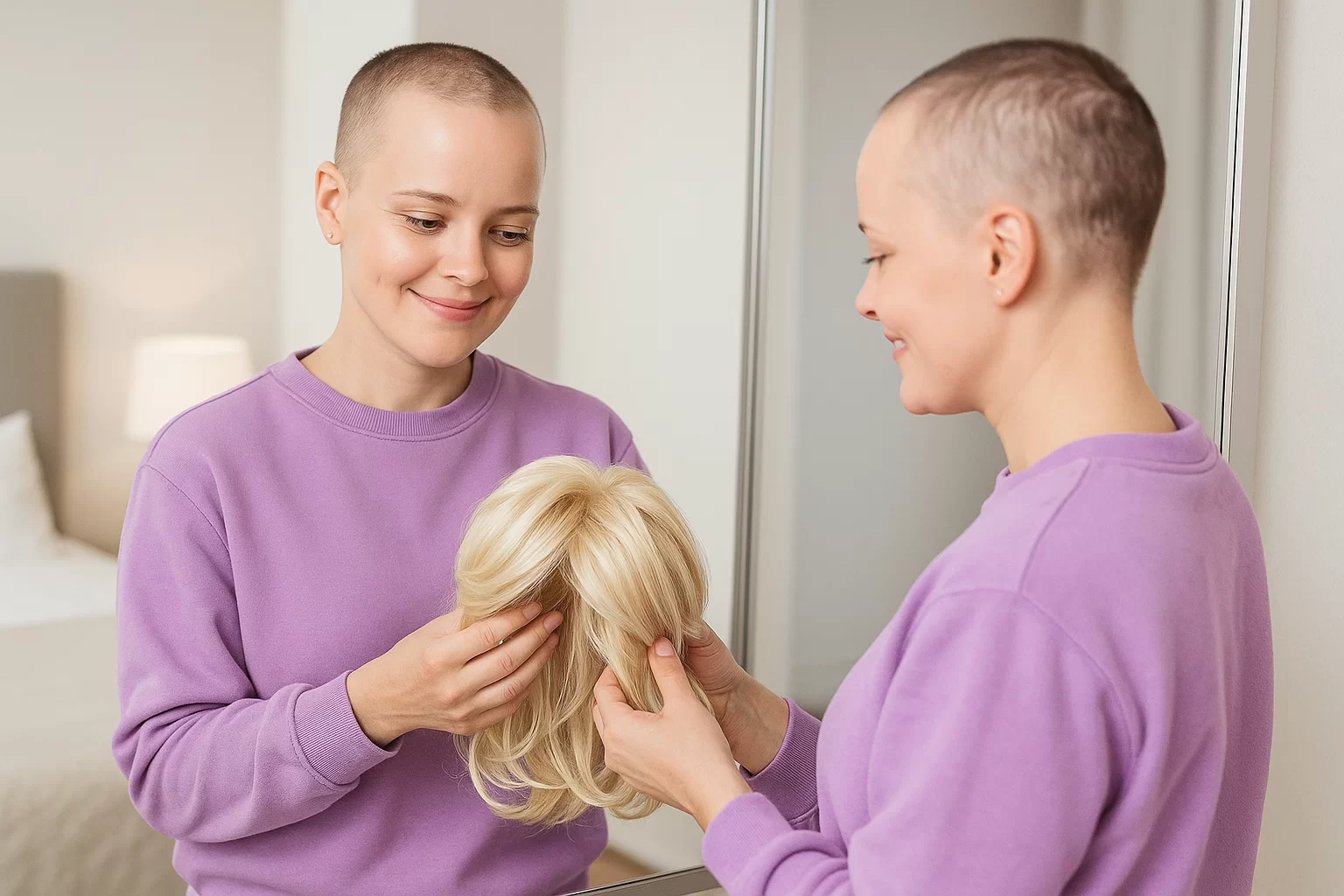 Beim ersten Termin zeige ich ihnen welche Möglichkeiten wir haben . Zusammen suchen wir uns ein paar mögliche Perücken aus die vom Schnitt, Haarlänge und Farbe für sie geeignet sind. Schon 1 bis 2 Tage später können wir zusammen die Modelle anprobieren. Sehr gerne dürfen sie auch bei jedem Besuch Begleitpersonen mitnehmen, die Sie bei der Auswahl unterstützen. Beim ersten Termin zeige ich ihnen welche Möglichkeiten wir haben. Zusammen suchen wir uns ein paar mögliche Perücken aus die vom Schnitt, Haarlänge und Farbe für sie geeignet sind. Schon 1 bis 2 Tage später können wir zusammen die Modelle anprobieren. Sehr gerne dürfen sie auch bei jedem Besuch Begleitpersonen mitnehmen, die Sie bei der Auswahl unterstützen.